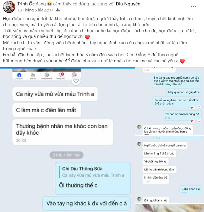 Dịu Nguyên có hơn 20800 giờ cống hiến cho công việc Cứu chữa và tư vấn sữa mẹ, trải qua hơn 13.650 case với bà mẹ và trẻ em trên toàn Việt Nam
